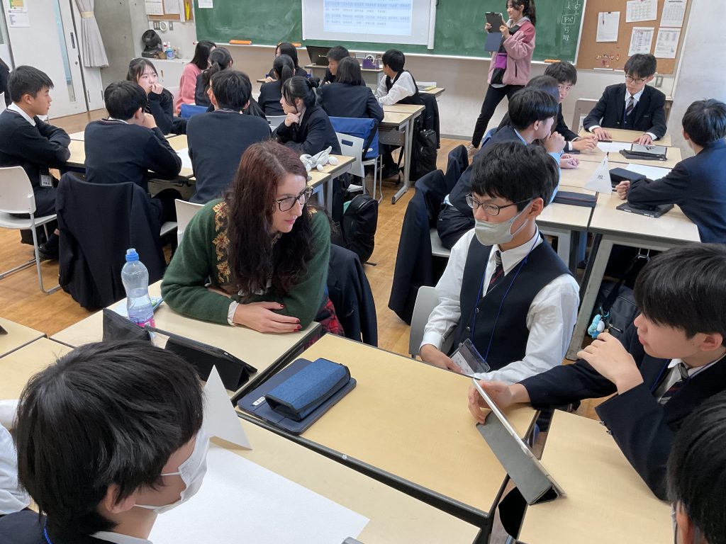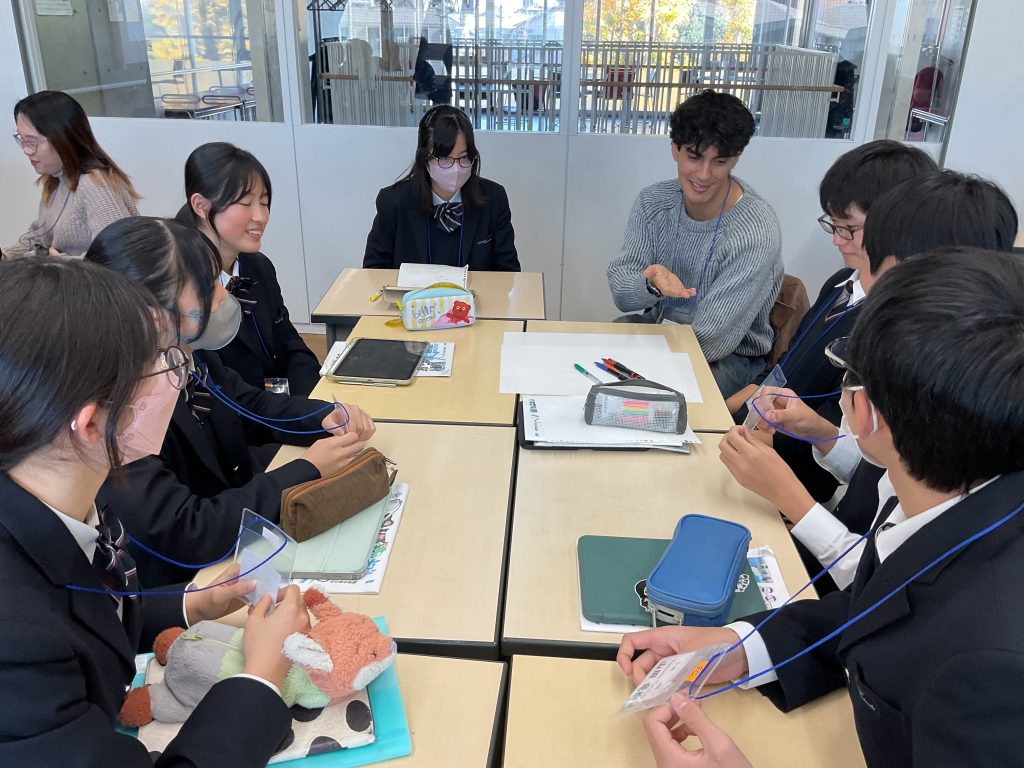 その修学旅行の成果をもとに、留学生のみなさんをお招きして「平和」についての意見交換をしました。