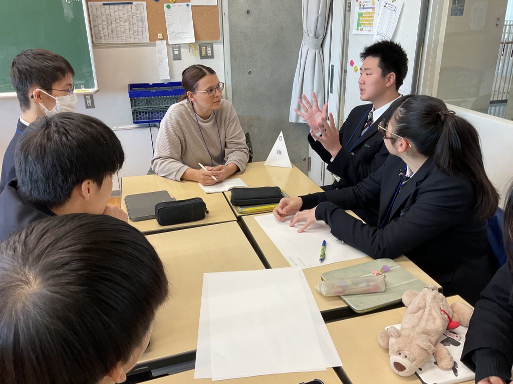 「平和と発展、どちらを優先? どちらが大切?」「命の価値に優劣をつけないためには?」「公害の(被害者への)差別に対する向き合い方」など、即効性のある結論を得にくいテーマでしたが、異なる文化背景を持った留学生の方の話を聞きながら、活発な議論を展開していました。